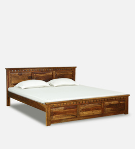 Buy Flora Solid Wood King Size Bed In Rustic Teak Finish Woodsworth By Pepperfry Online Transitional King Size Beds Beds Furniture Pepperfry Product
